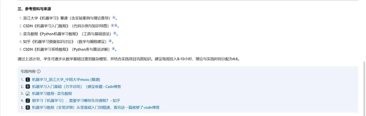 如果你觉得老师讲课的速度跟不上自己知识吸收的速度,完全可以借助 AI 为你量身编写的教程和规划的学习路径,实现更快速的成长。我在课堂上便引导学生进行更深入的探索,尝试借助 AI 制定出本学期的个性化学习计划。