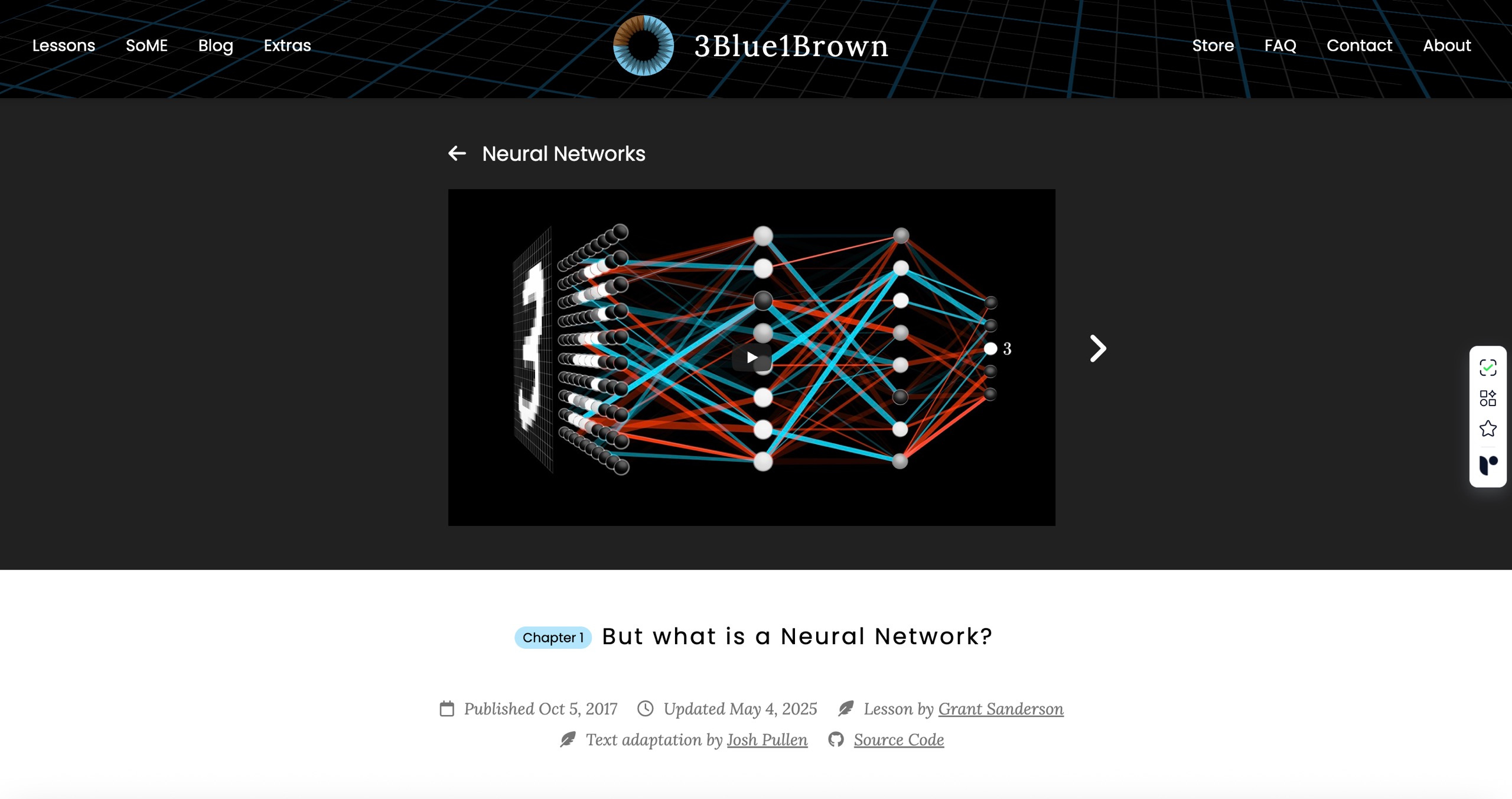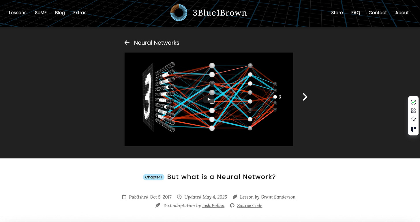 还有像 3Blue1Brown 这样的账号,能把机器学习里「卷积神经网络」这类抽象概念,用动画形式讲得特别清楚,连我上课都常常推荐学生去看。