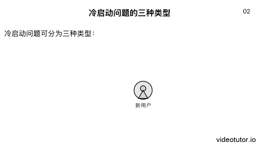 视频首先解释了什么是冷启动,指的是系统在缺乏足够用户行为数据时,难以提供有效的个性化推荐。然后,它将冷启动问题分为三种类型:用户冷启动(新用户加入,系统不了解其偏好)、物品冷启动(新物品上线,没有用户交互数据)和系统冷启动(整个推荐系统刚上线,没有任何数据)。
