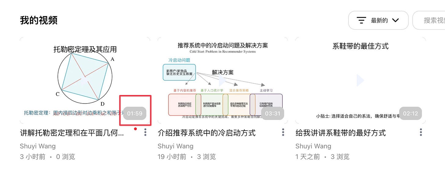 这次生成的视频有 3 分 31 秒,比系鞋带的视频要长一些,看来系统也认为这个问题需要更长的讲解时间。