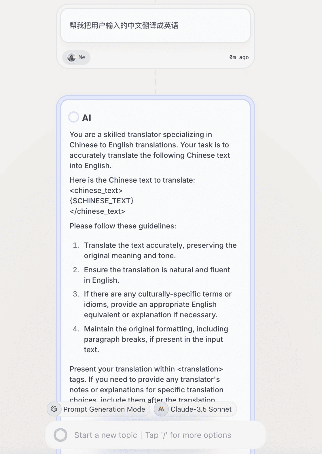 所以我经常干的就是让一个大模型去写提示词,让另一个来修改。我觉得很多时候它确实能产生事半功倍的效果,因为这里形成了一个 AI 大模型之间的同行评审(peer review)机制。