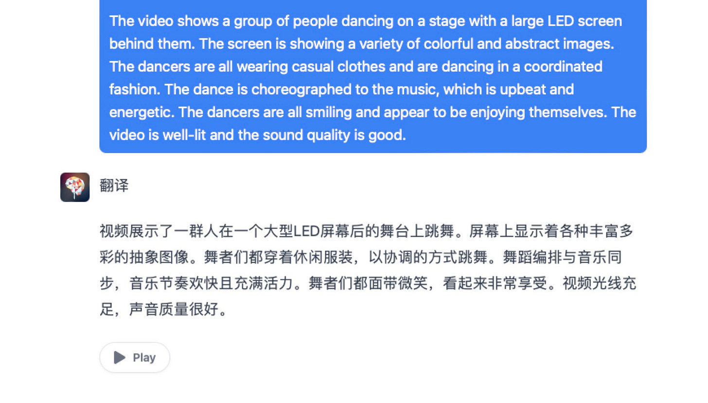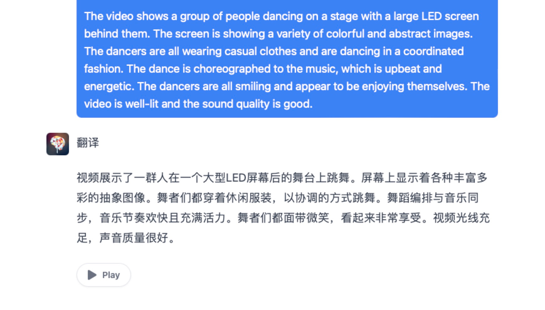 为了让你理解这种差别,我给你举个例子。Gemini 1.5 Pro 是天生的多模态 —— 可以看视频,总结视频内容。你给它一段视频,一般预期就是告诉你这段视频里面有什么而已。