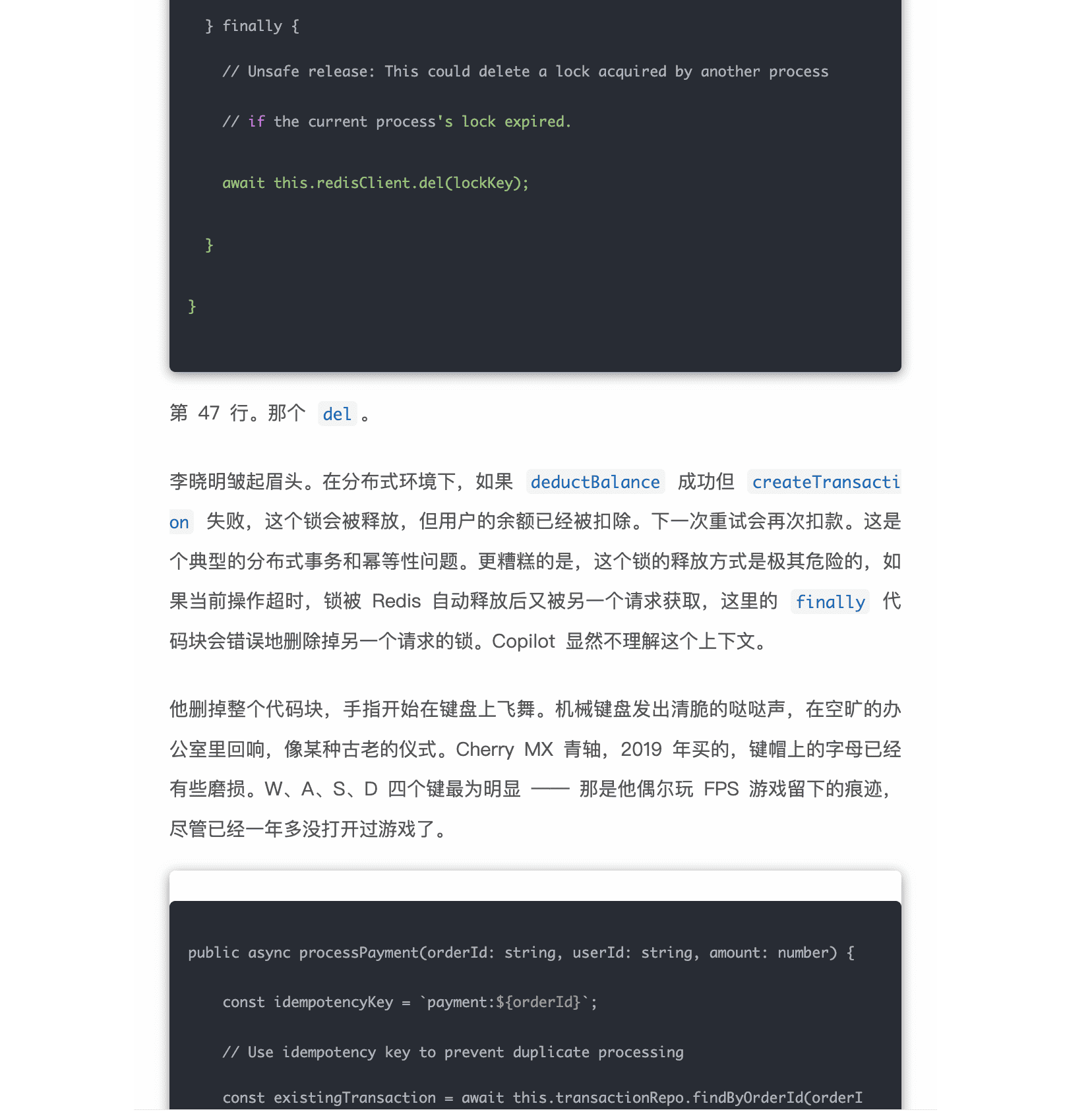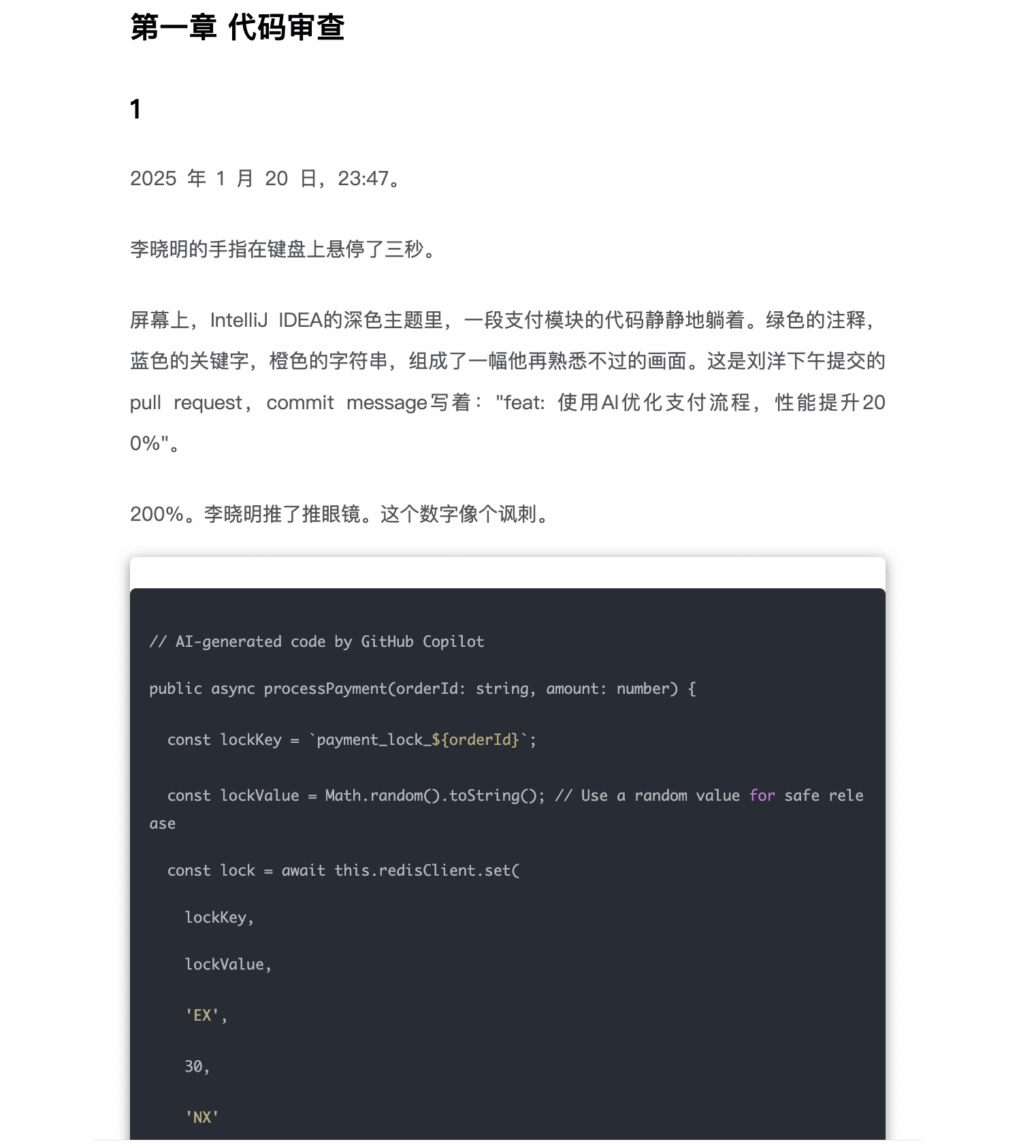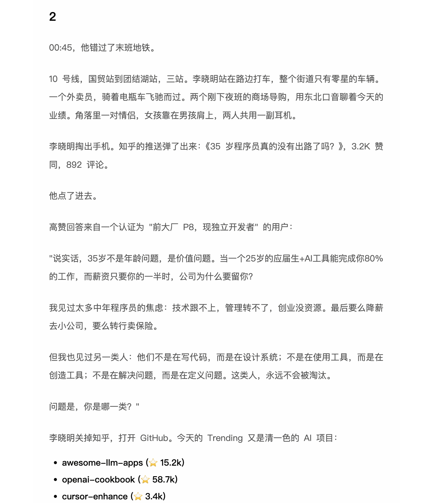 我最近在公众号发了一篇文章《(AI 小说)代码消亡史:一个 33 岁程序员的 AI 求生指南》。