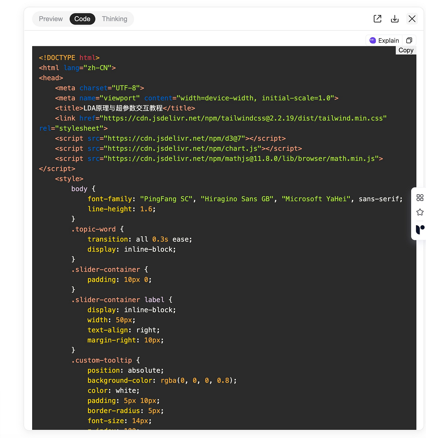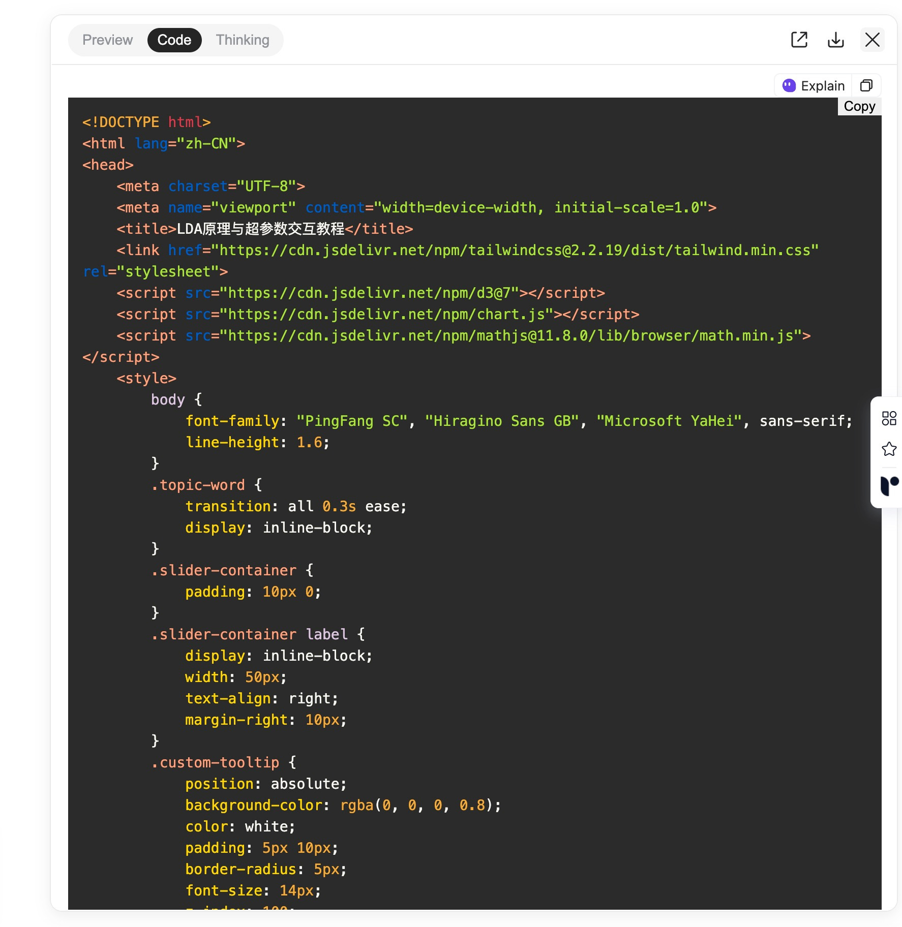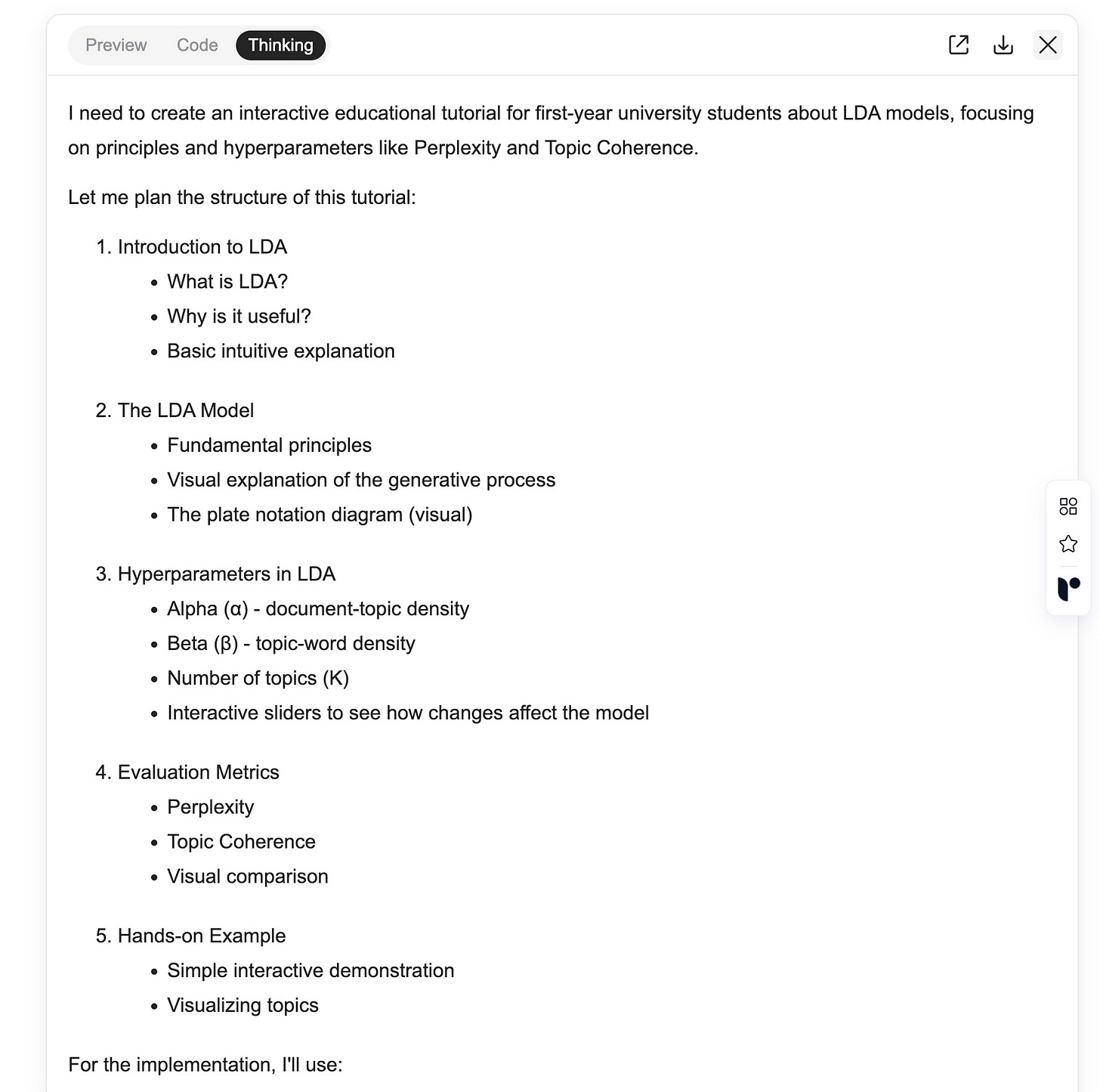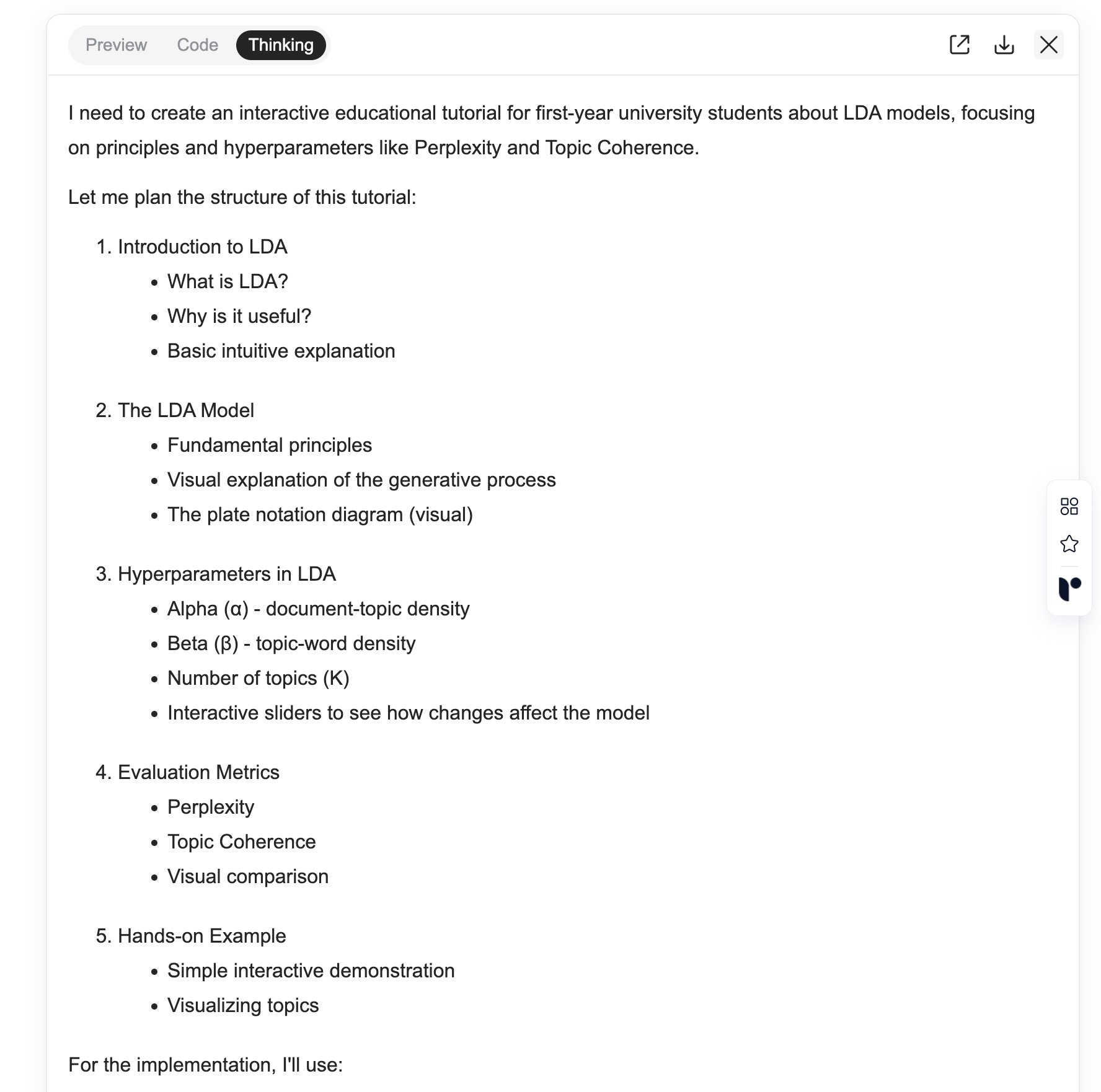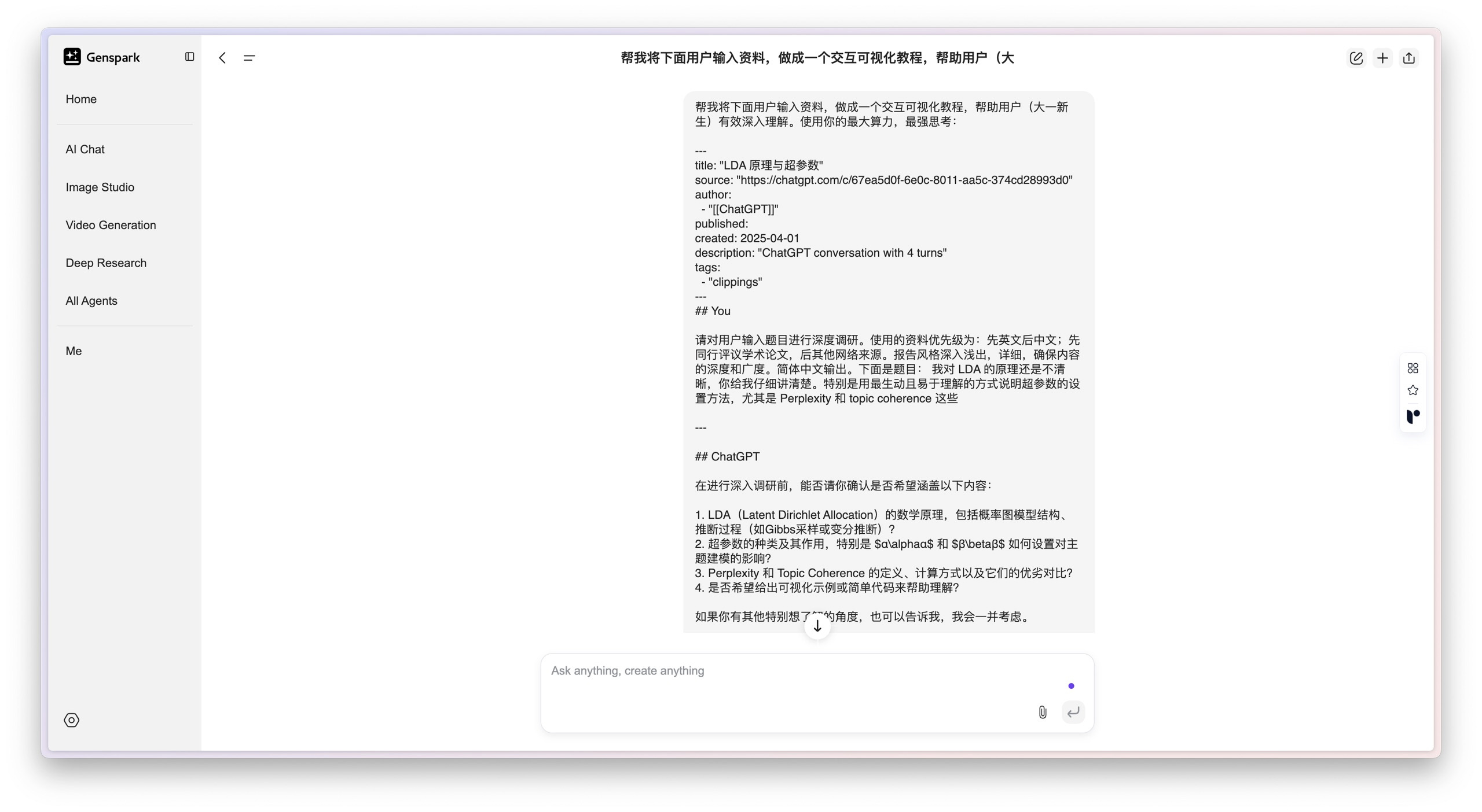首先,它就像我们平时做研究一样,到网上搜索大量和 LDA 有关的背景资料,比如一些入门教程、详细文章,还有图表和可视化工具。