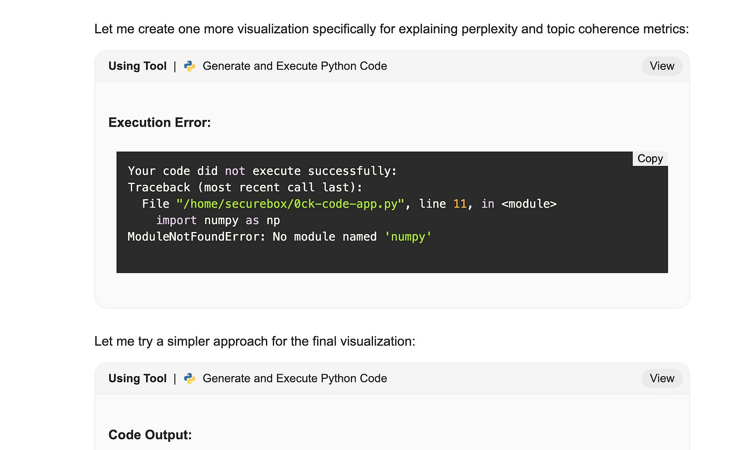 我开始有点儿疑惑,还以为是工作流程出了 bug 。但是很快我明白过来,它居然是打算自己运行代码,生成更具体的图表来进一步完善教程。