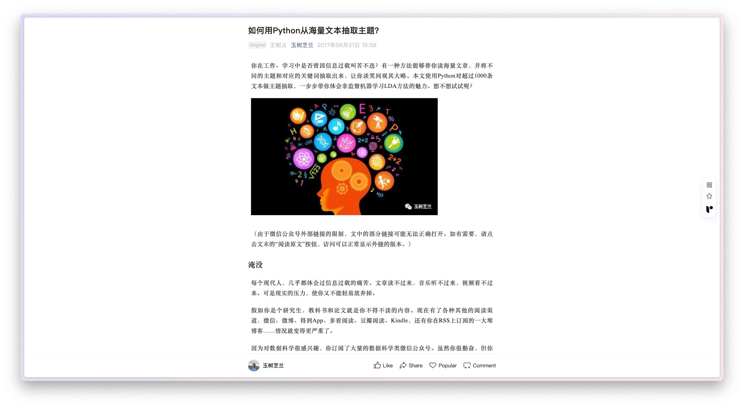 事情的起因是这样的:最近我在给二年级本科生讲《机器学习》课程,讲到了一个名为 LDA(Latent Dirichlet Allocation,潜在狄利克雷分布)的主题模型。如果你是本公众号的老读者,对这个模型应该不陌生。我上次介绍它,还是在 2017 年。