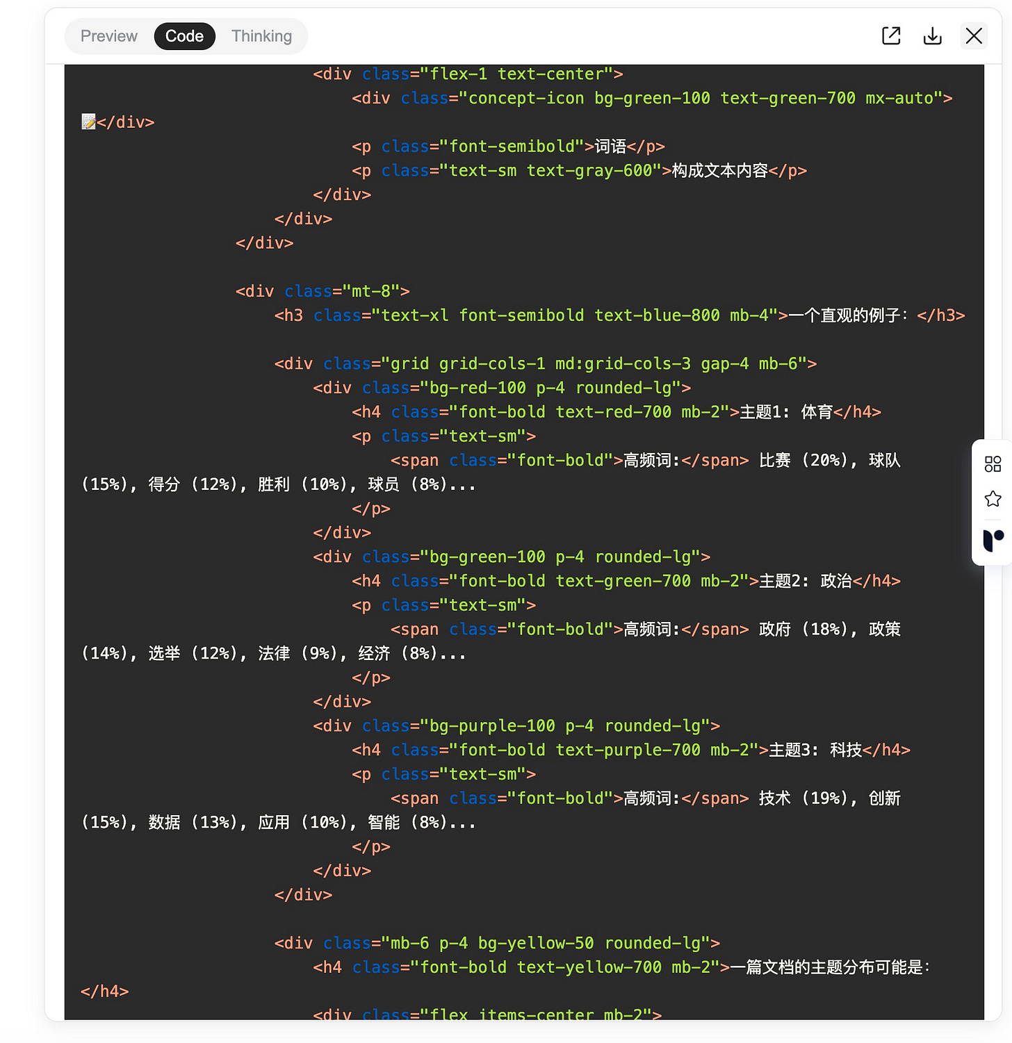 比如说,它举了个生动的小例子,说明一篇文章如何由多个不同的主题组合而成,你还可以点击展开细节查看。