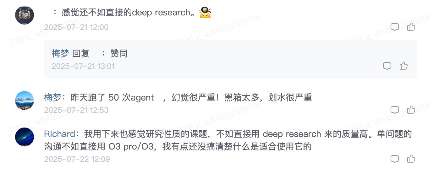 然而,有的星友觉得, ChatGPT Agent 并不如 OpenAI Deep Research 好使。他们指出 ChatGPT Agent 幻觉严重,还划水。