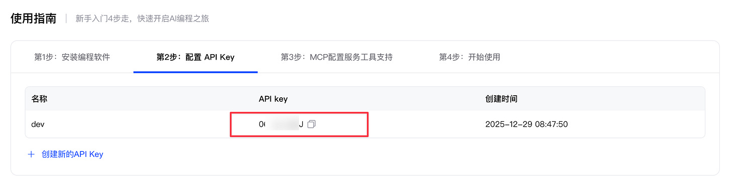 订阅完成后你需要新建一个 API Key。按照导航操作就行。