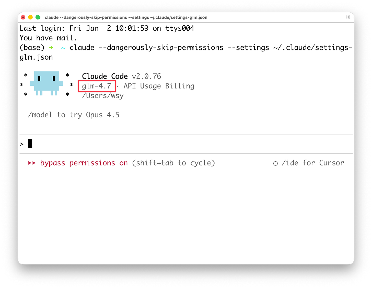 claude --dangerously-skip-permissions --settings ~/.claude/settings-glm.json