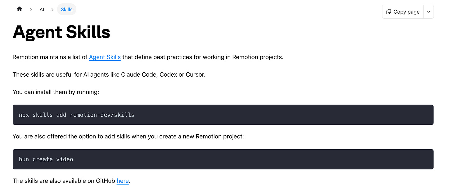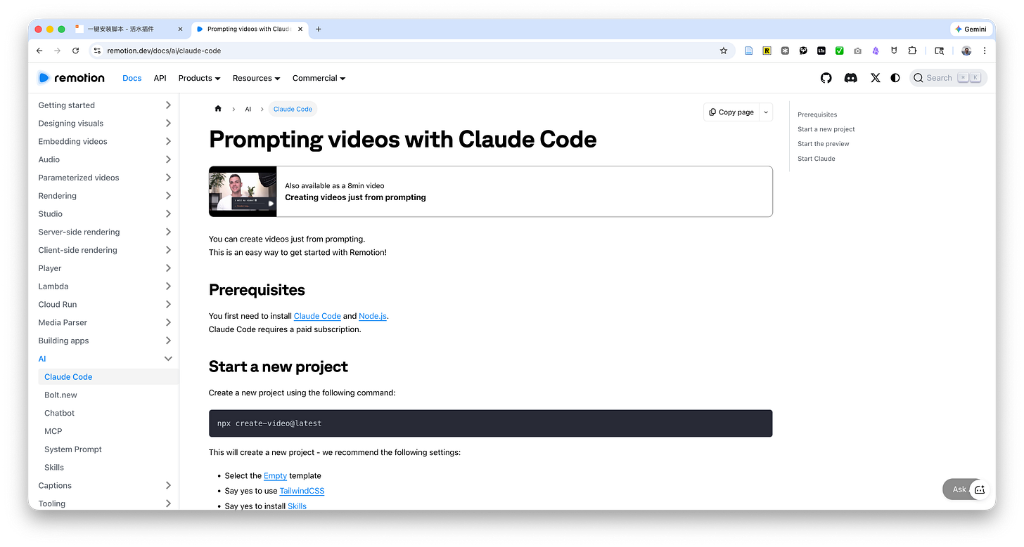 环境准备好之后,安装 Remotion Skill 其实只需要一行命令。但是之后你需要对它进行调整。