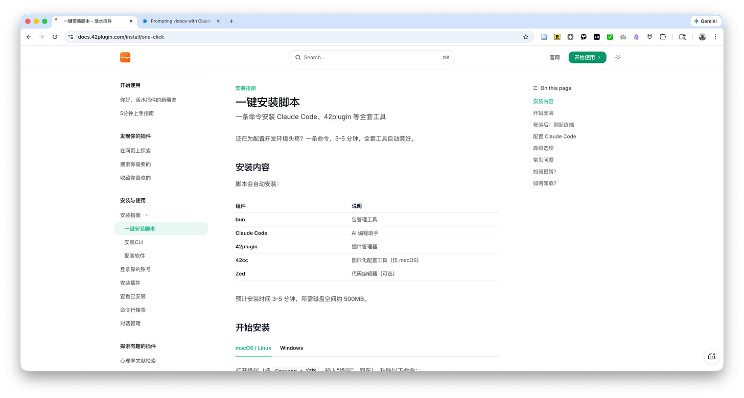 这个步骤你可以参考阳志平老师他们活水团队做出来的 快速安装教程,一行命令就能把包括 Claude Code 在内的各种组件装全,确实是「喂饭」级别的细致教程。
