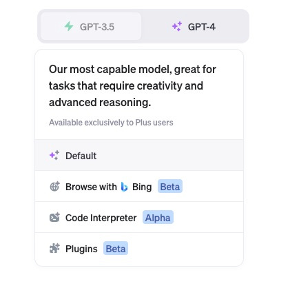 当初 ChatGPT 的插件和模式,都是用官方提供的链接填表申请的。我填表后等了许久,最先获得的是联网模式,之后获得了 Code Interpreter,最后随着插件向全部 Plus 用户开放,我这才算是凑齐了各种特色模式。