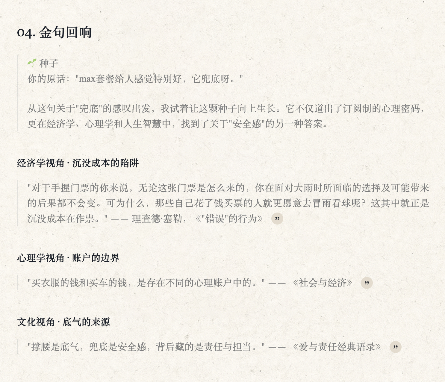 你来看看其中「金句回响」部分,是不是旁征博引?