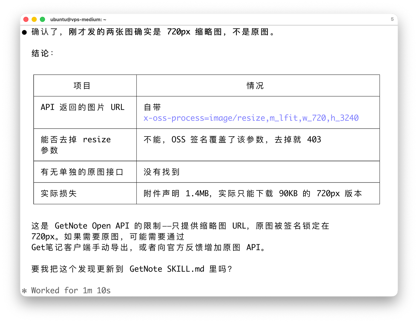 可惜,当我第一次这样用的时候,我发现,图片是糊的。经过 Claude Code 调查发现,这是当时 Get 笔记的一个限制,只能用 720px 缩略图。