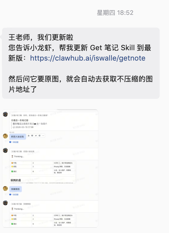 但对我来说,这可忍不了,于是我直接通过刀哥,联系到 Get 笔记的工程师,人家用了两天的时间,把整条链路调整好,现在你如果使用,图片就都是高清的了。