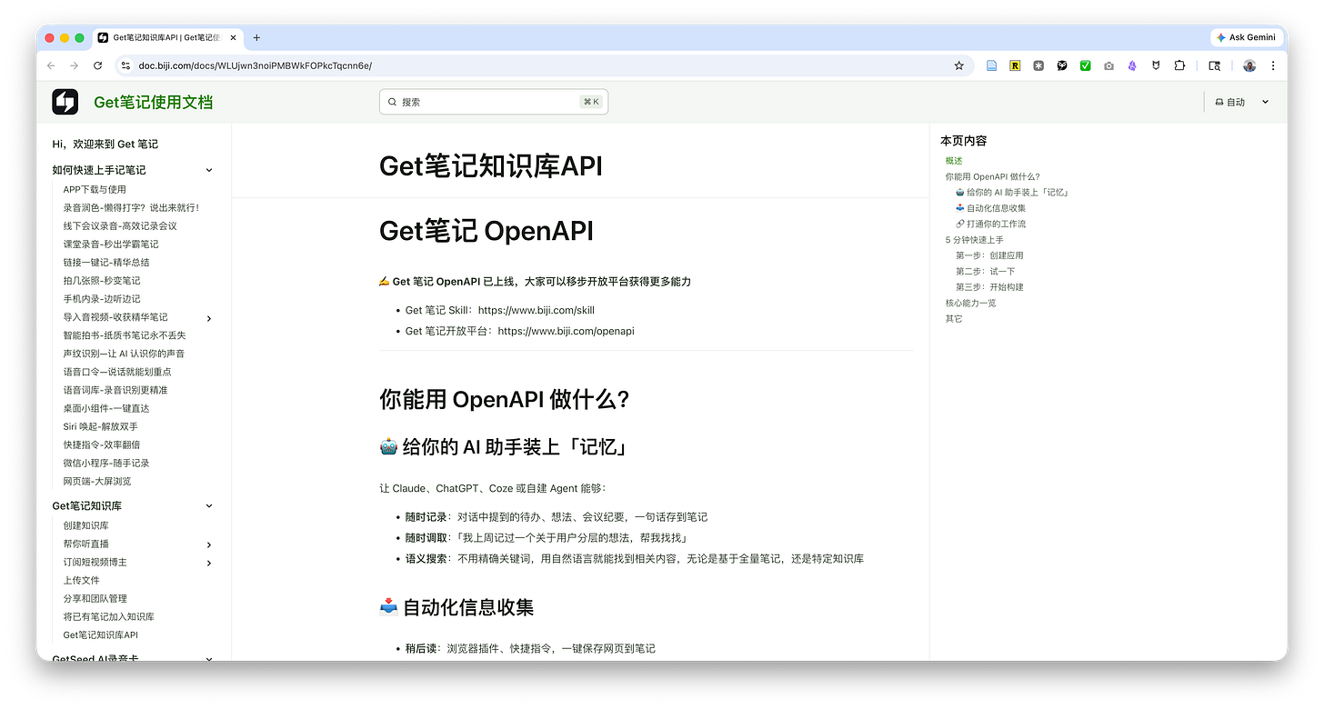 说具体点,Get 笔记把 OpenAPI 和 Skill 都正式放了出来。