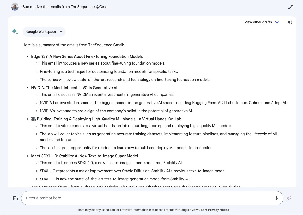 类似的,我让 Bard 总结了 The Sequence 发来的邮件主题,结果是这样的: