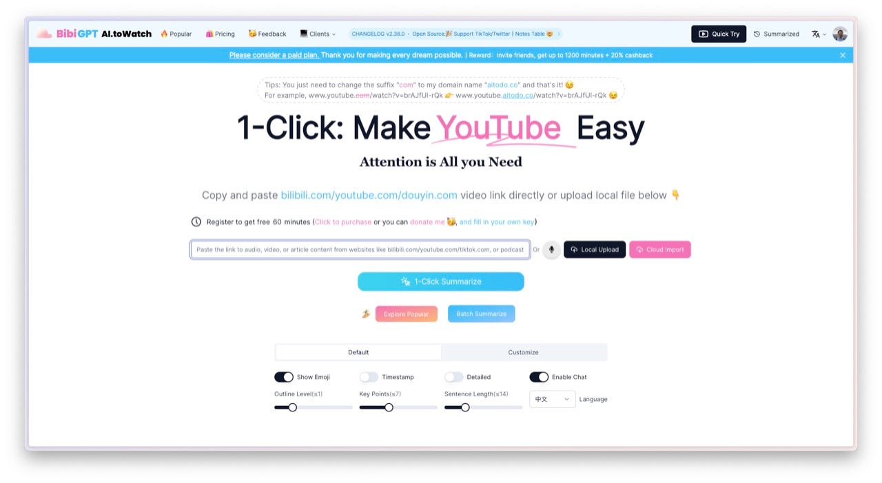 为了实现这一目标,我曾请教吕立青,能否在 他的产品 BibiGPT 中增加一个功能。原本,BibiGPT 就不仅能够从在线视频链接中提取字幕,还能生成思维导图、进行问答等。