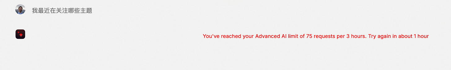 直到最近,我总算搞明白了 Raycast AI 是怎么回事儿,之后那叫一个玩儿命用,很快就超出了限额。