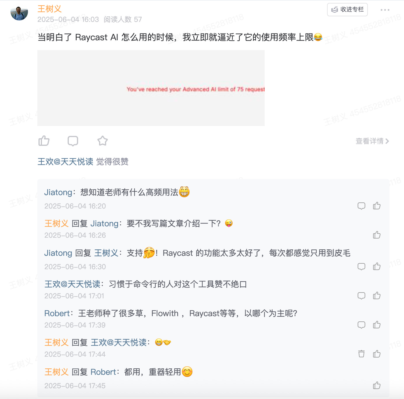 我把这个感受分享到了知识星球,星友们很感兴趣,问我如何也能更高效利用 Raycast ?