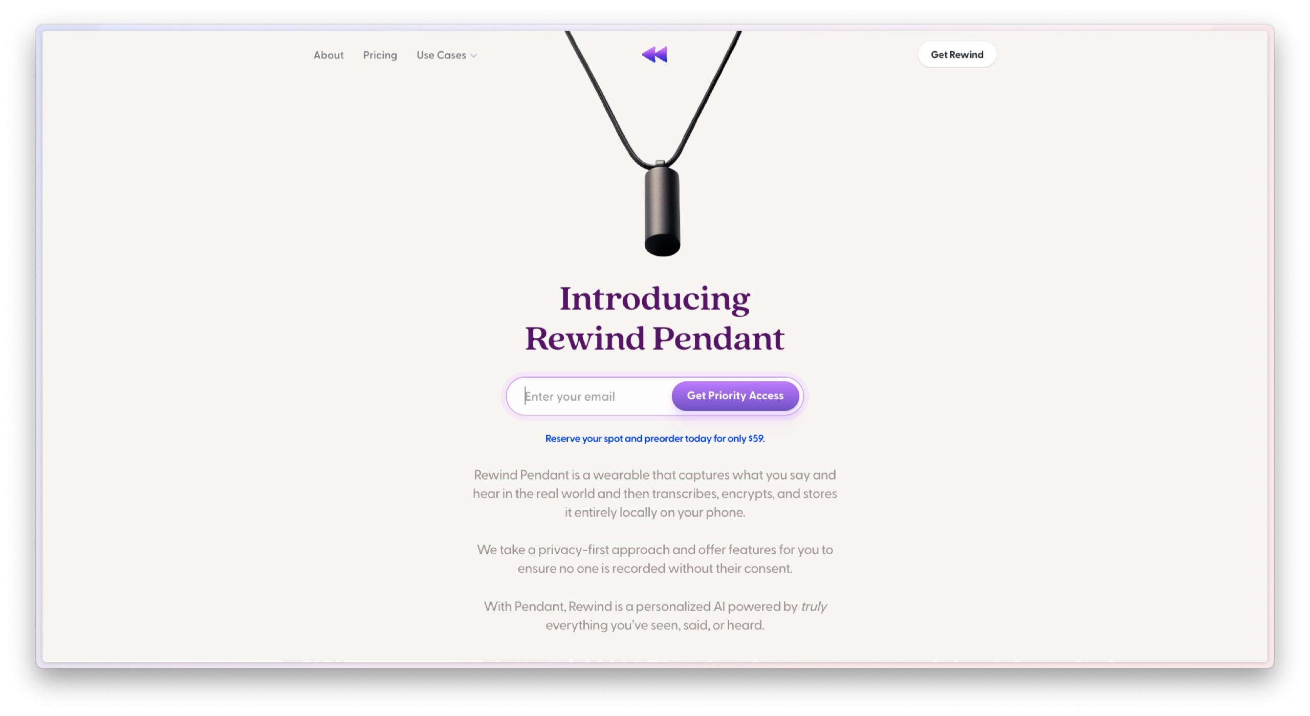 前些日子,我看到了一款设备,叫做 Rewind Pendant 。