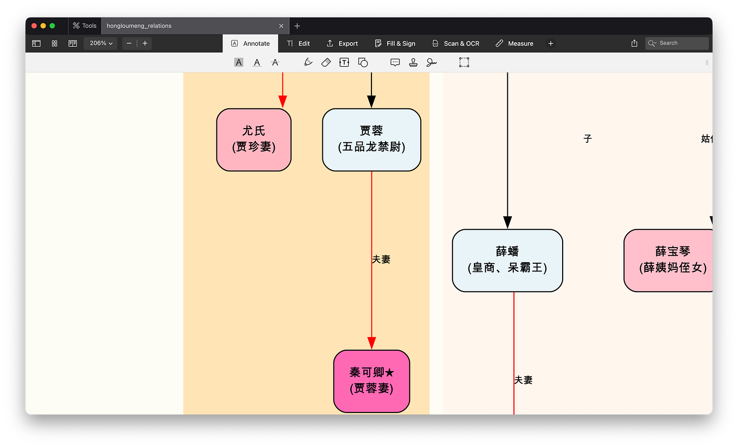 上面这张图,就是 Claude Code 利用 Skill 自动调研红楼梦人物关系,并且做出的可视化图形(局部)。