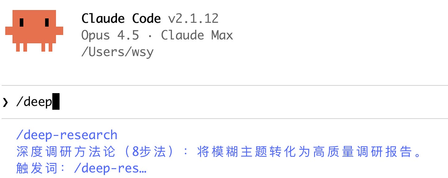 而因为有了这个名字,你在 Claude Code 中就可以按照普通 command 调用方式,直接用斜杠呼叫该 skill。